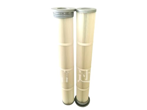 濾筒的品種較多,有細而長與粗而短之分。細長濾筒(如φ≤160,L=1~2m),其褶(如45褶)間空隙大、夾角大,褶少而淺,過濾面積比同徑同長的濾袋大2~5倍,清灰易而效果好;適用于濃度≥15g/m粉塵的過濾除塵,過濾風(fēng)速0.6~1.2m/min。粗短濾筒(如φ350,L=0.66m)直徑大、長度短、褶多(120~350褶)而深、褶間空隙小,過濾面積大,較之同徑同長濾袋面積大14~35倍,適于場地面積小、空間小的地方布置;但因褶角小,粉塵易積聚,難于清灰,適于濃度≤5g/m粉塵的過濾除塵,過濾風(fēng)速不宜>0.6m/min。